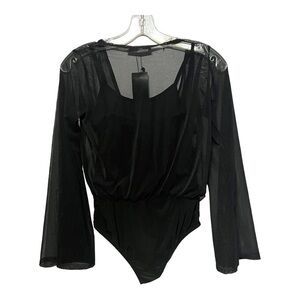 Nasty Gal Wrap Bodysuit Black Mesh Sheer Overlay Flare Sleeve Blouse Snap Size 4