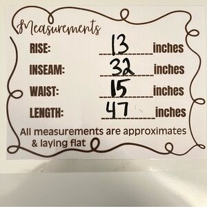 @daynamite the inseam is 32” if you need any other measurements they are listed in one of the last photos