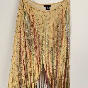 Incredible statement pants from Nasty Gal — brand new with tags! These yellow-tan flare pants are fully embellished with shimmering sequins, beading, and cascading tassels for a dramatic, show-stopping look. Heavily detailed and lined for comfort, these pants are perfect for festivals, special events, or turning heads on a night out.