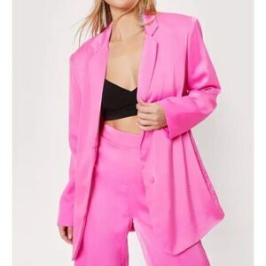 Nasty Gal ZUA60A7E10D Women's Sz 6 Hot Pink Satin Oversized Blazer