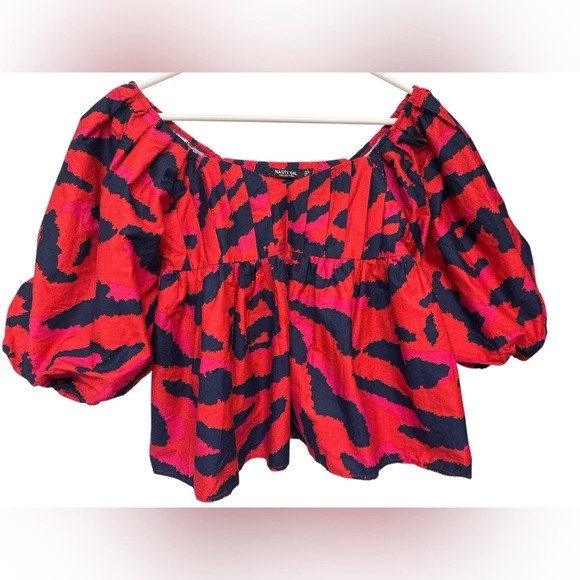 Nasty Gal Zebra Off The Shoulder Puff Sleeve Smock Top. Size 4.