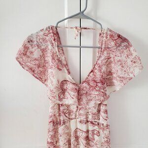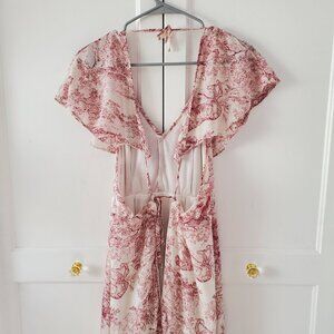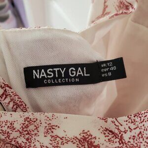 Red Toile Print with Tigers Maxi Dress by Nasty Gal, size US8/ UK 12. Tie back, zip skirt. Fully lined.