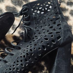Nasty Gal black lace up perforated wedge booties