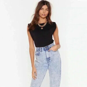 Nasty Gal chip on your shoulder black Jersey top sz 10 NWT