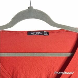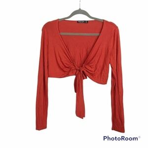 Nasty Gal burnt orange long sleeve tie front crop top. Adjustable tie front closure. Vneck style. Super cropped to cover the bust.
