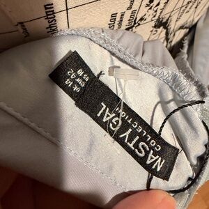 Nasty Gal oh what a night satin halter jumpsuit pale blue silver size 10 with oversized wide leg bottom culottes palazzo wide leg buttons neck