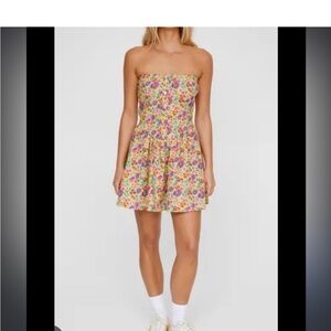 Nasty Gal skater ditsy floral strapless linen cotton mini dress