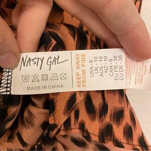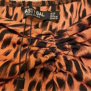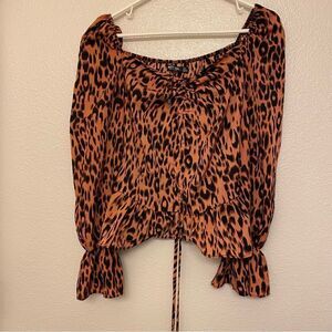 Nasty Gal Orange animal print blouse crop top long puff sleeve -US 6
