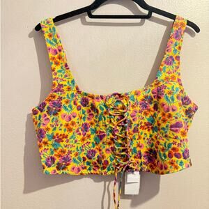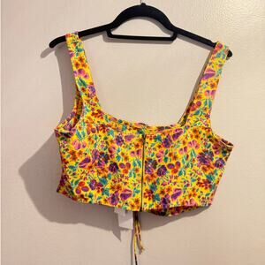 Nasty Gal-Size 10-Yellow Floral-Corset Looking Crop Top-NWT
