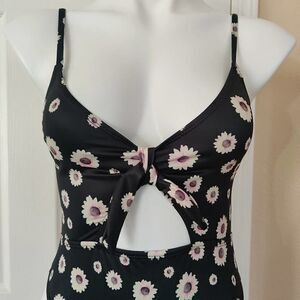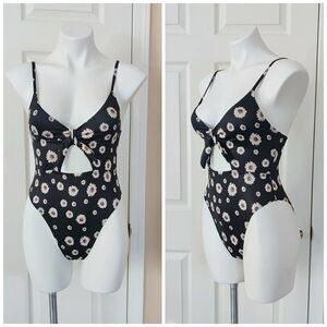 Nasty Gal daisy print tie front cutout high waisted one-piece swimsuit sz 2