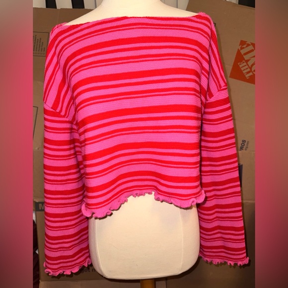 Nasty gal. Striped Red and Pink Cropped Sweater large