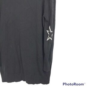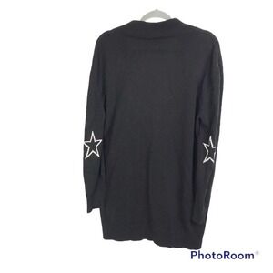 Nasty gal button front cardigan. Solid black color. White outlined stars on elbows. Deep V neck line. Knit.