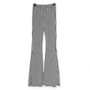 Size 4 elastic waist black and white flare leg pants. The measurements are a 22.5 inch waist, 44.5 inches in length, 32.5 inch inseam and 34 inch hips.