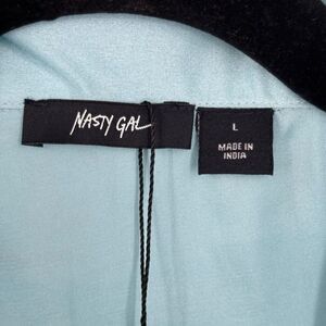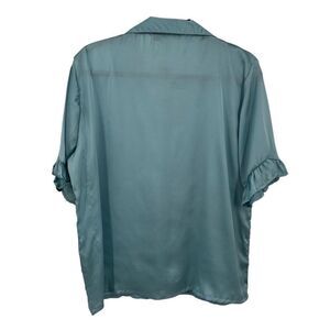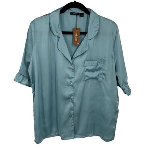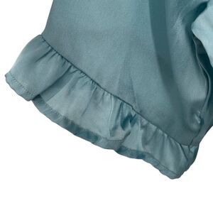 Nasty Gal Satin Ruffle 2 Piece Pajama Shirt And Shorts Set Blue Size Large NWT