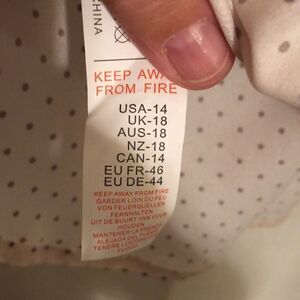 One tiny polka smear left upper neck, NWT, otherwise no flaws