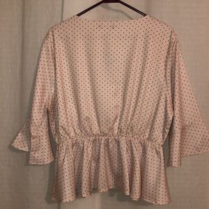 Nasty Gal 14 Well Spotted Peplum Bell Sleeve Faux Wrap Cream Brown Polka Top