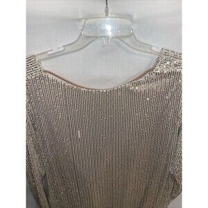 Nastygal Backless Dress Women’s Size 20 Beige Gold Sequin Long Sleeve New Defect
