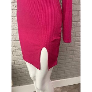 Nastygal Bright Pink Ribbed Long Sleeve Bodycon Dress Size 8
