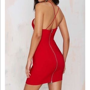 Flattering red dress ordered from Nasty Gal. Brand is Honey Punch. Really pretty on and sucks you in at all the right places. Brand new