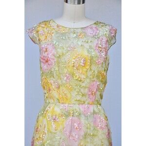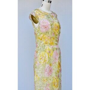 Nat Kaplan SILK Floral 50s Dress Sequined Beaded Pencil Wiggle Dress Bombshell