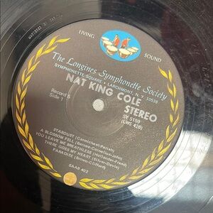 Vintage Nat King Cole vinyl record. Features classic tracks like 'Stardust' and 'Paradise'. Sold as is see photos