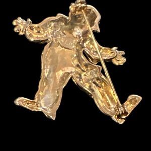 Nat Landau Hyman gold blue crystal clown jester brooch- signed 2.75” x 1.5”