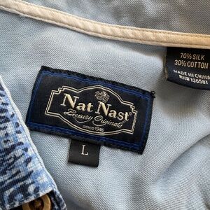 Nat Nast Luxury Originals Mens L Blue Geometric Short Sleeve Silk Blend Shirt Great condition. No notable flaws. Smoke-free home.