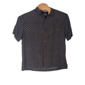 Nat Nast Button Front Shirt Size XL Short Sleeve Silk Blend Blue