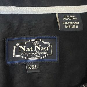 Nat Nast Button Up Mens XXL Blue Silk Blend Button Up Side Slit Geometric
