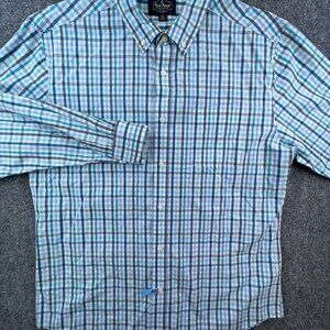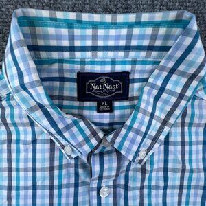 Nat Nast Button Up Shirt Blue White Check Size XL Men Adult Long Sleeve