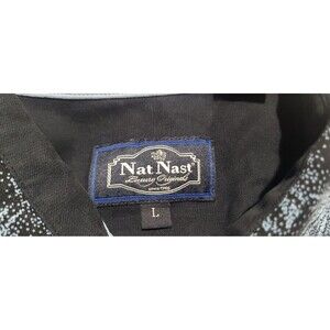 The shirt also boasts convenient pockets and easy-care features, making it a practical addition to any wardrobe. It comes in size L and is suitable for regular-sized men. The embroidered accents and vintage-inspired Nat Nast branding add a touch of sophistication to the shirt. Made in China, this shirt is a luxurious addition to any collection.