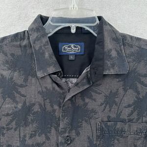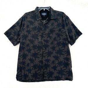 Nat Nast Luxury Originals Mens Gray Black Palm Tree Silk Blend Hawiian Shirt L