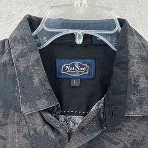 Nat Nast Luxury Originals Mens Gray Black Palm Tree Silk Blend Pocket Shirt L