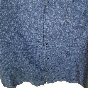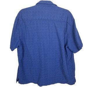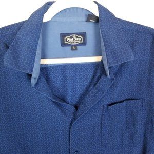 Nat Nast Luxury Originals Mens L Blue Geometric Print Silk Blend Button Up Shirt
