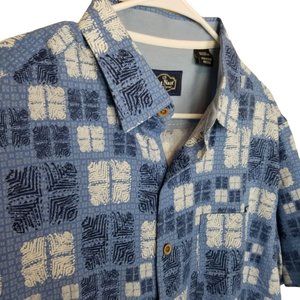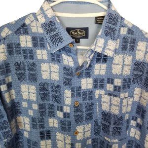 Nat Nast Luxury Originals Mens L Blue Geometric Short Sleeve Silk Blend Shirt