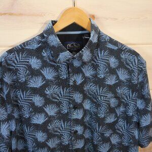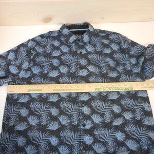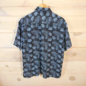 Nat Nast Men's L Silk Blend Button-Up Shirt Navy Short Sleeve Palm Leaf Print