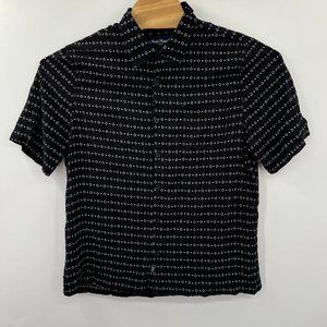 Nat Nast Men's Large Black Geometric Rayon Short Sleeve Button Front Shirt