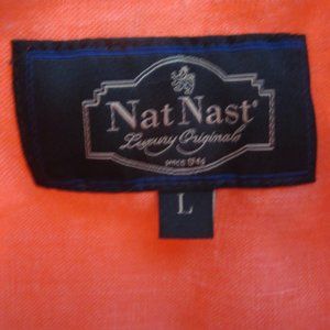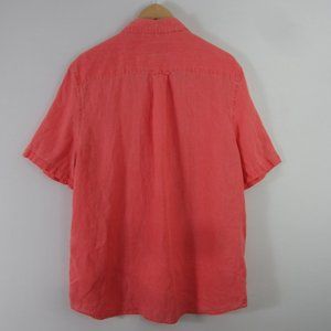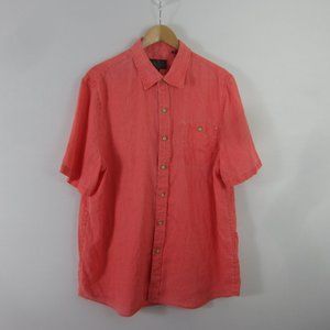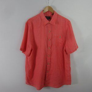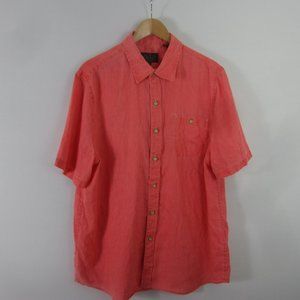Nat Nast Mens Large Red Short Sleeve 100% Linen Button Shirt Summer L Classic