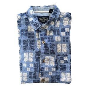 Nat Nast Men's Medium Luxury Originals Silk Cotton Short Sleeve Blue Cruise Geo