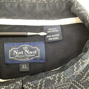 Nat Nast Mens Short Sleeve Button Up Silk Blend Shirt Black Blue White Size XL