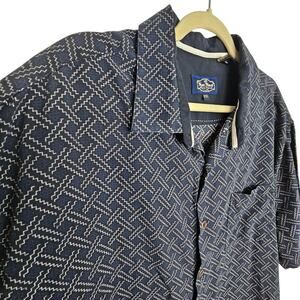 Nat Nast Mens Silk Cotton Shirt Geometric Coastal Travel Vacation Button Sz XXL
