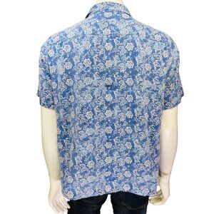 Nat Nast Mens Silk Hawaiian Shirt Blue Floral Short Sleeve Button Size XL