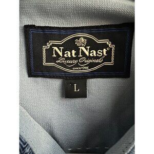 Nat Nast Blue Silk Blend Button Front Camp Shirt Large Pocket Lightweight. Great Pre-Owned Vintage Condition Gently Worn. Ships from smoke free home.