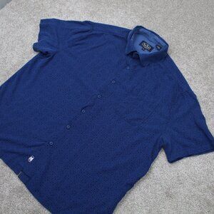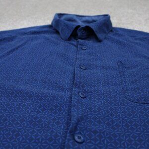 Nat Nast Shirt Adult XL Blue Geometric Silk/Cotton Blend Short Sleeve Button Up