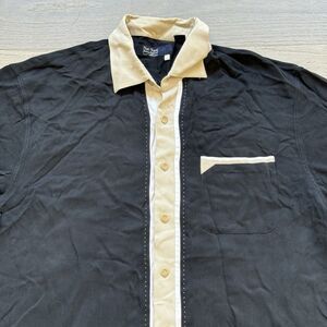 Nat Nast Shirt Men Large Silk Black Bowling Charlie Sheen Short Sleeve Button Up