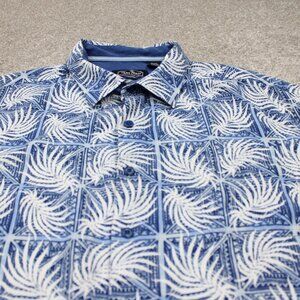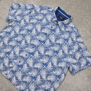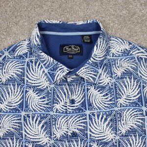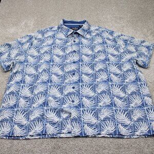 Nat Nast Shirt Mens 2XL XXL Blue/White Floral Silk/Cotton Short Sleeve Button Up