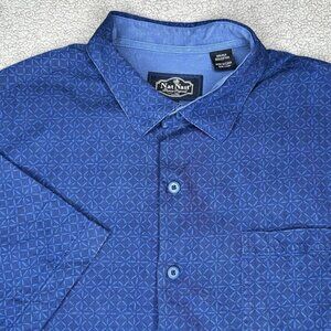 Nat Nast Shirt Mens Large Blue Geometric Silk Blend Lounge Party Camp Button Up