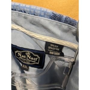 Nat Nast Shirt Mens 2XL blue geometric short sleeve Button Down Silk blend Originals Camp.