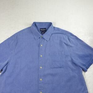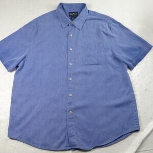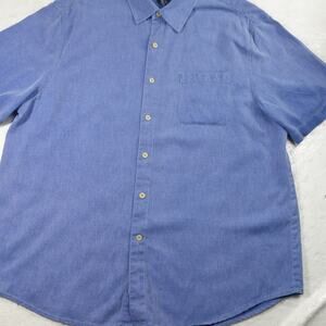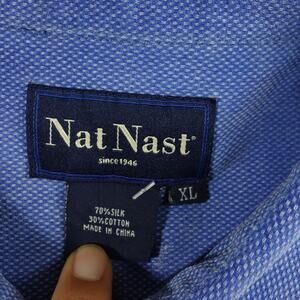 Nat Nast Shirt Mens XL Blue Birdseye Houndstooth Bowling Camp Silk Relaxed