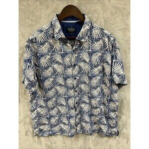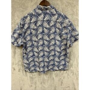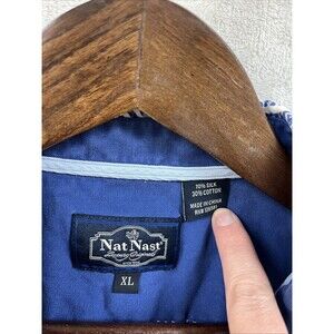 Nat Nast Shirt Men’s XL Blue White Hawaiian Print Button Up Silk Cotton Vacation